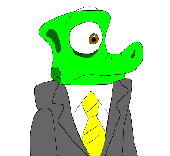 DESCRIPTION: Croco J. Lobson Jr. is the main insurance mascot of company Lobson-Brikkers. He was created in 2059 by the scientist Igor Von Leeches. Croco spent his early years learning how to run the company and run the human insurance agents out of work. Soon, laws were passed to stop the job market from being taken over by mascots and Croco's insurance scope was limited to other mascots. Croco was terminated from his role as main mascot of Lobson-Brikkers in 2080 when he was usurped by his longtime business partner, Cubert Q. Walker-Brikkers. Croco now lives with Bowler Skull and Nixon Bubble in a one story home in Virginia.